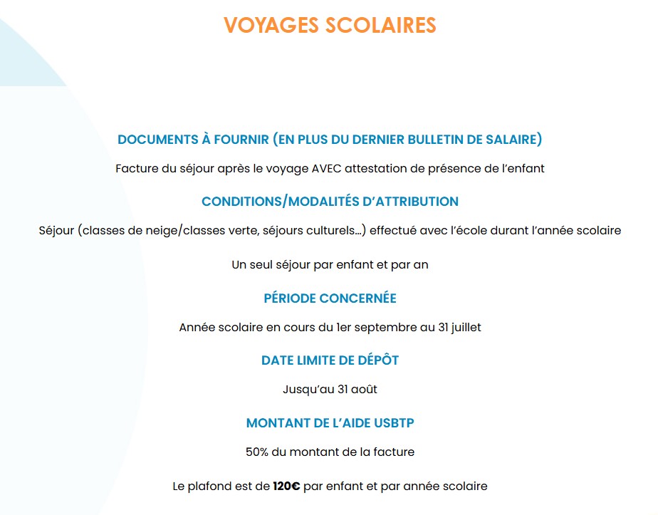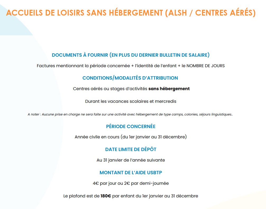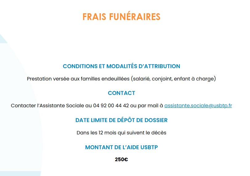 L’action sociale proposée par l’USBTP présente deux volets : le versement d’aides financières pour les prestations sociales listées ci-dessous, la possibilité de bénéficier d’un accompagnement par l’Assistante Sociale de l’USBTP, pour les salariés qui le souhaitent .